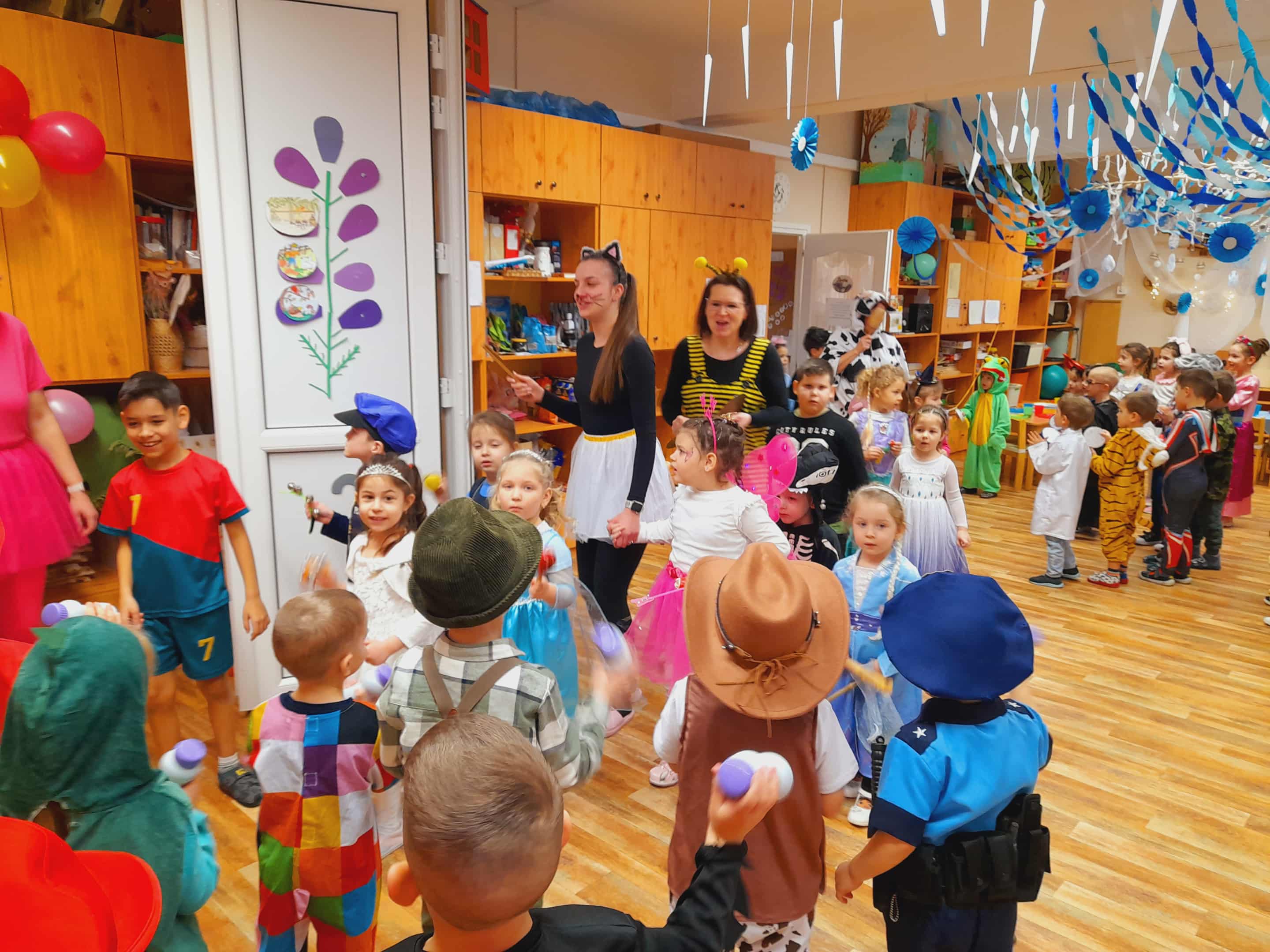 Hétfőn közös álarc készítés és mozgásos játékok és táncház várta óvodásainkat.